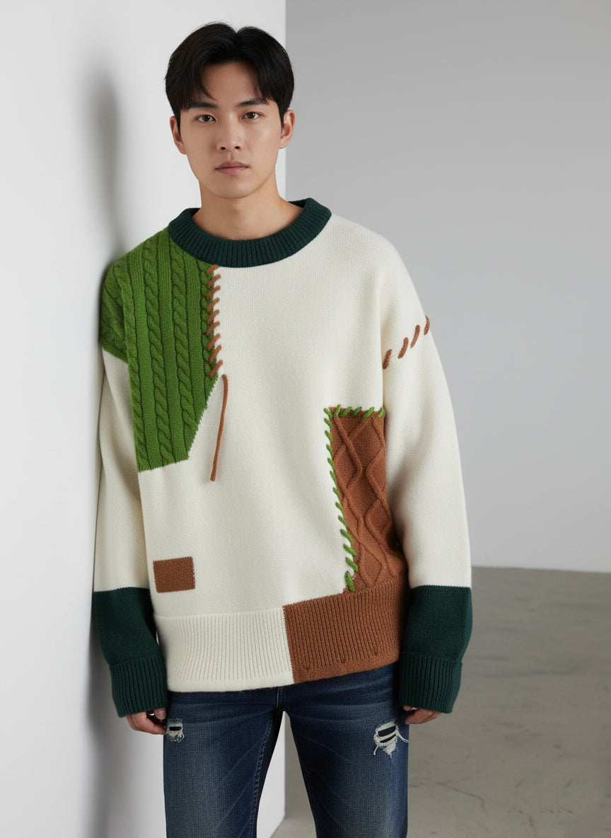 Men's Plus Size Color Block Cable Knit Sweater